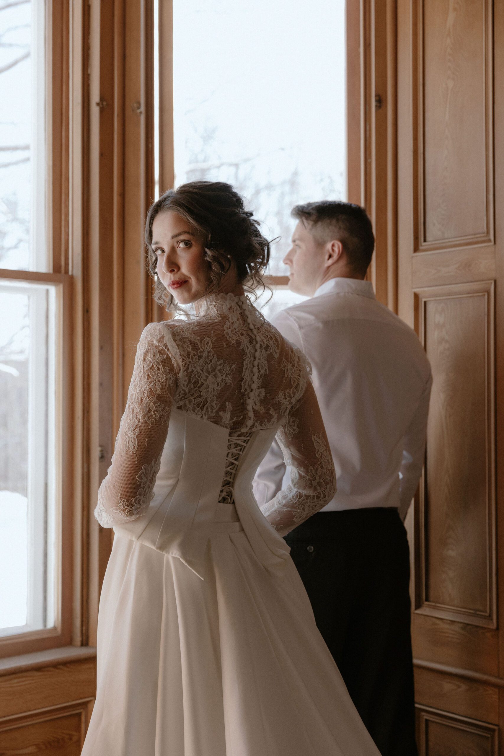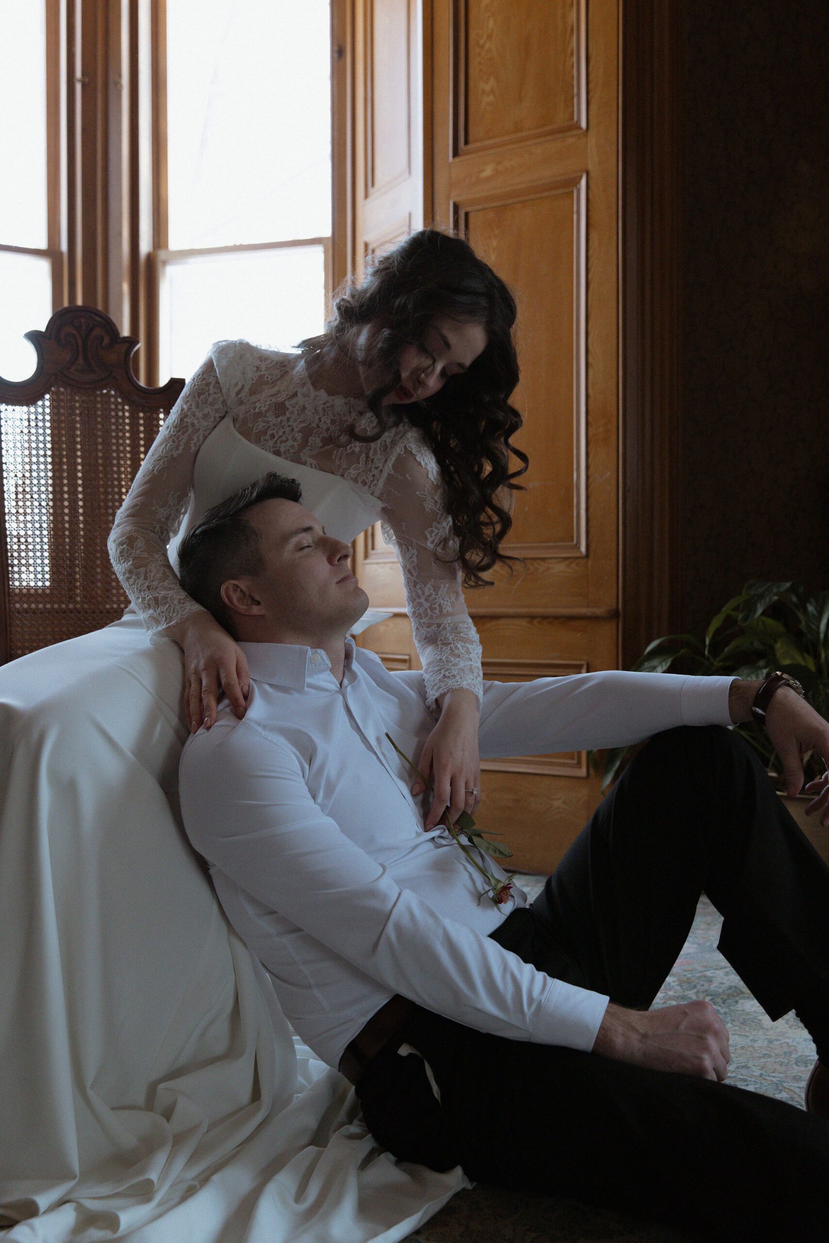 The bridal styling was composed of four layered elements, combining lace, corsetry, and flowing skirts to create a look rich in texture and depth. Found pieces were thoughtfully reworked and styled to subtly reference Victorian influences while maintaining a contemporary, editorial sensibility.